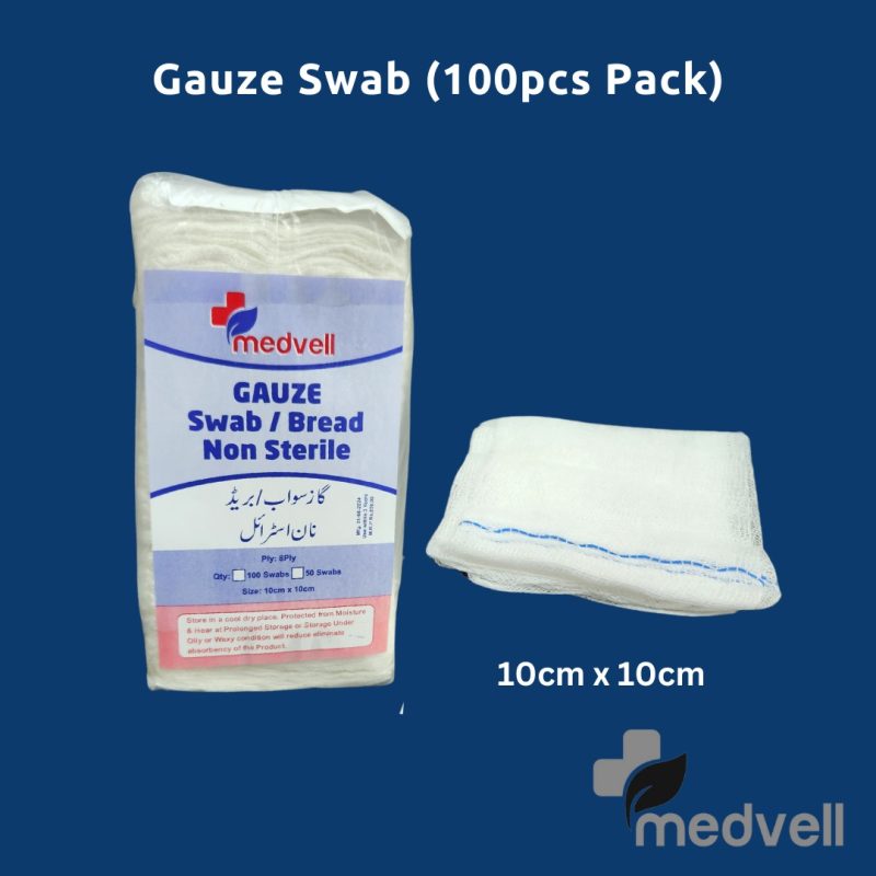 Cotton Gauze swab commonly use for cleaning wounds by gently removing dirt, blood, pus, and other contaminants. it is available in various sizes such 10×10 and 15×15.
